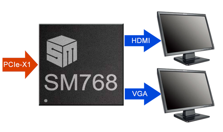 通過(guò)搭載SM768 2D顯示芯片,使得FT-2000/4平臺(tái)具備基礎(chǔ)圖像顯示功能,可通過(guò)HDMI/VGA等接口連接顯示器,為辦公、網(wǎng)頁(yè)瀏覽、高清視頻播放提供窗口;